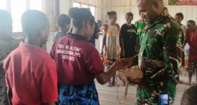 Pos Tarup Satgas Swasembada Yonif 751/VJS Ibadah Bersama dan Bagikan Kalung Rosario Untuk Semua Jemaat