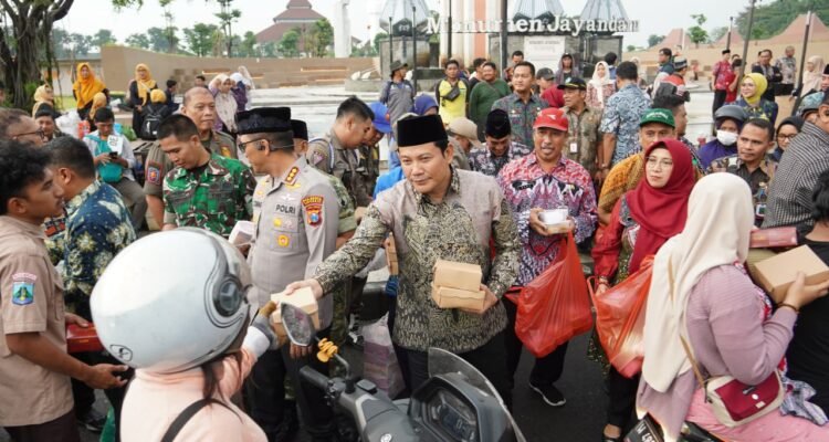 Jelang Berbuka Puasa Bupati Subandi Bersama Jajaran Dan Forkopimda Partisipasi Bergotong Royong Bagikan Takjil Kepada Warga Pengguna Jalan