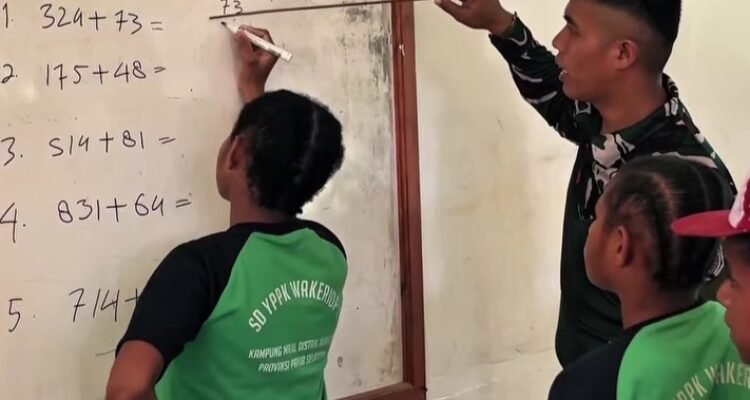 Dorong Semangat Anak Papua,Satgas Swasembada Yonif 126/KC Mengajar di SD YPPK Santo Andreas Wakariop