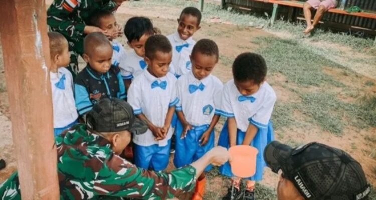 Yonif 403/WP Satgas Swasembada Tebarkan Keceriaan dan Semangat Belajar Sejak Dini di Perbatasan