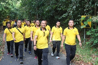 Olahraga dimulai pukul 07.00 WIB dari Pos 1 Bukit Menumbing. Tidak melewati jalur hutan, para personel berjalan menyusuri jalan aspal berkelok menanjak yang mengarah ke puncak bukit, di mana Pesanggrahan Menumbing berdiri kokoh sebagai bangunan cagar budaya nasional.