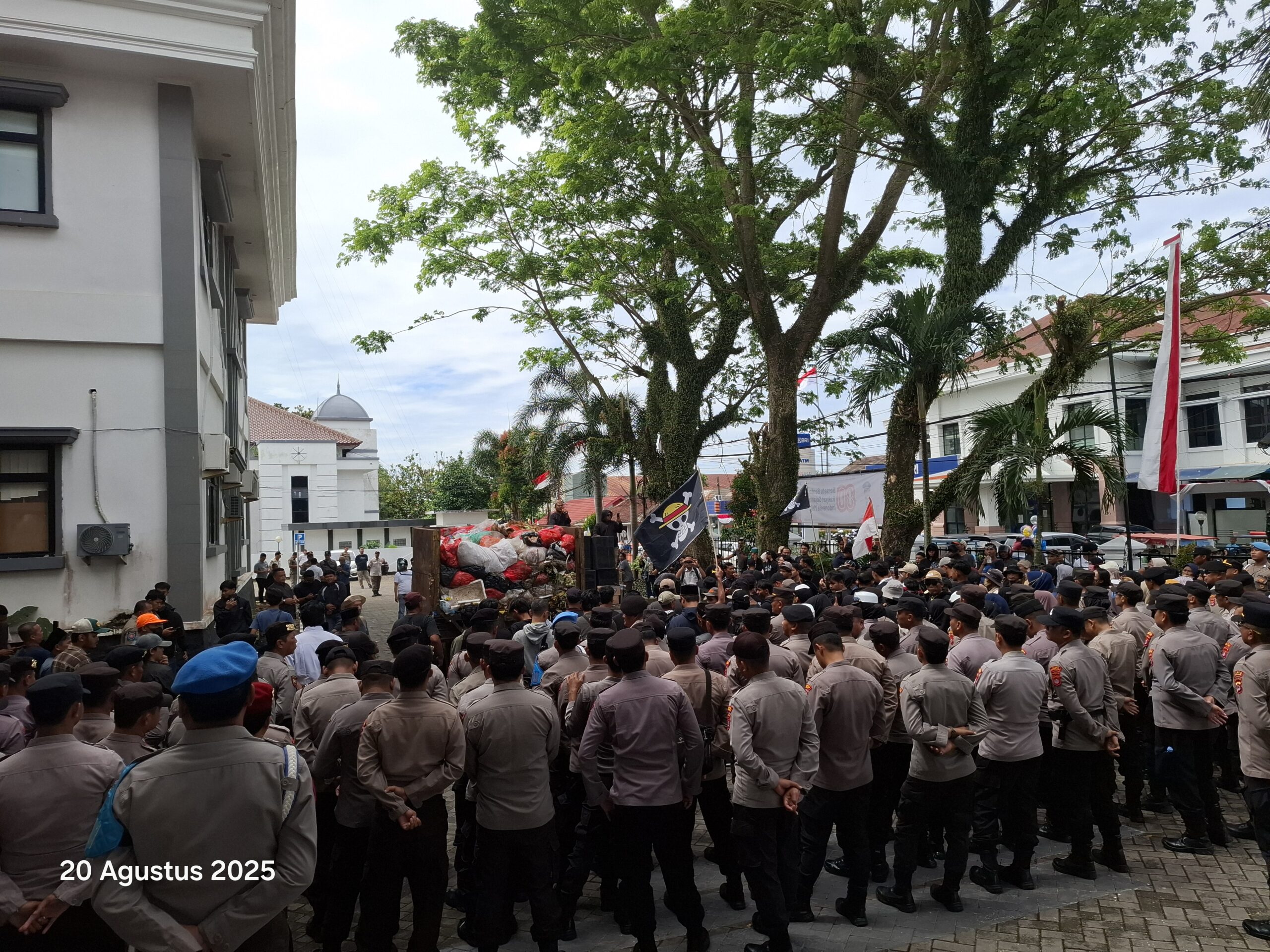 Massa yang dipimpin koordinator aksi berulang kali memanggil nama bupati dan wakil bupati dari atas mobil komando sambil meneriakkan yel-yel “lawan mafia sampah.” Kekecewaan warga memuncak hingga mereka menumpahkan satu truk sampah berbau busuk di depan halaman kantor bupati, (20/8).