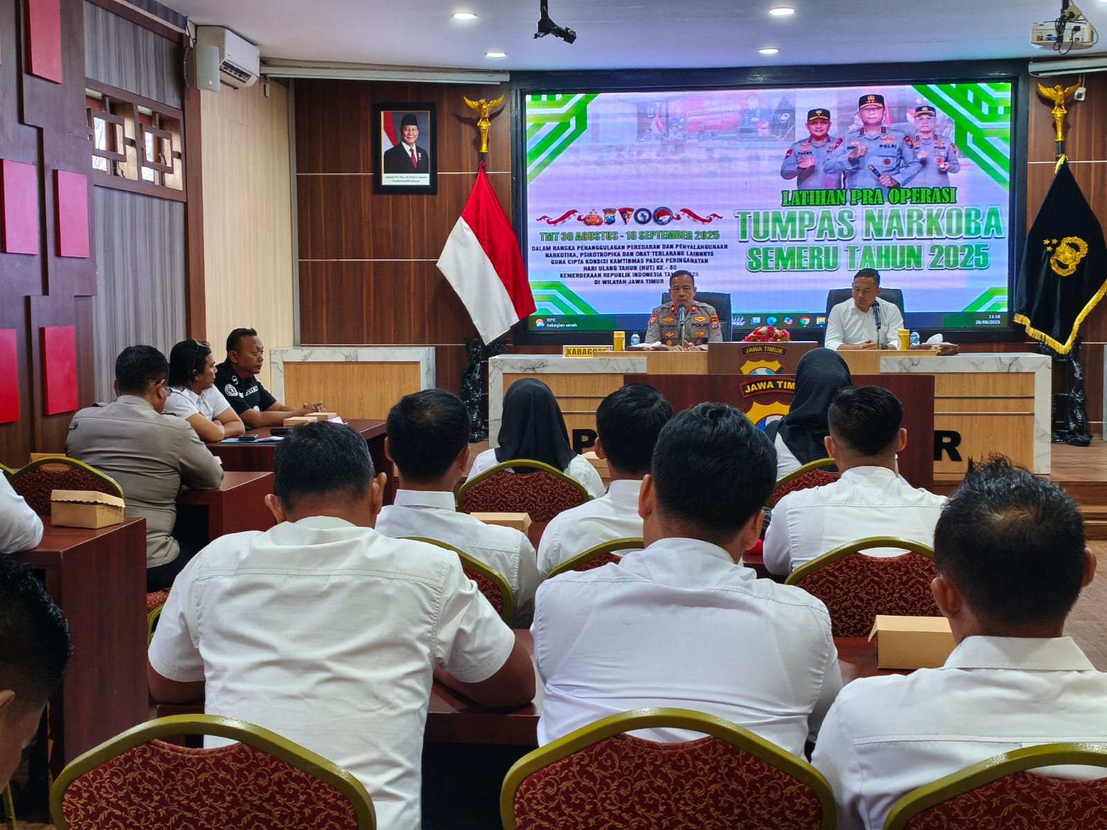Polres Jember serius dalam perang melawan narkoba. Hal itu dibuktikan dengan digelarnya Latihan Pra Operasi (Latpra Ops) Tumpas Narkoba Semeru 2025 di Aula Rupatama Mapolres Jember, Selasa sore, (26/8/2025).