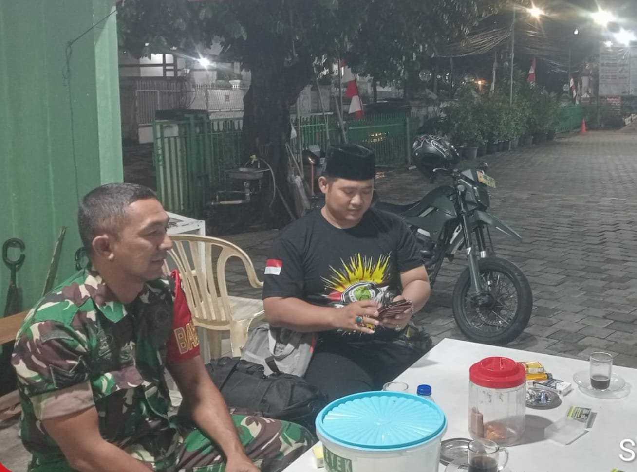 Desa (Babinsa) Kelurahan Pejaten Barat Koramil 03/Pasar Minggu-Kodim 0504/Jakarta Selatan,Serka Heru Setiawan melaksanakan Sistem Keamanan Lingkungan (Siskamling) bersama masyarakat warga Rt.12,Rw.01,Kelurahan Pejaten Barat, Kecamatan Pasar Minggu,Jakarta Selatan,pada Rabu malam (17/09/2025).