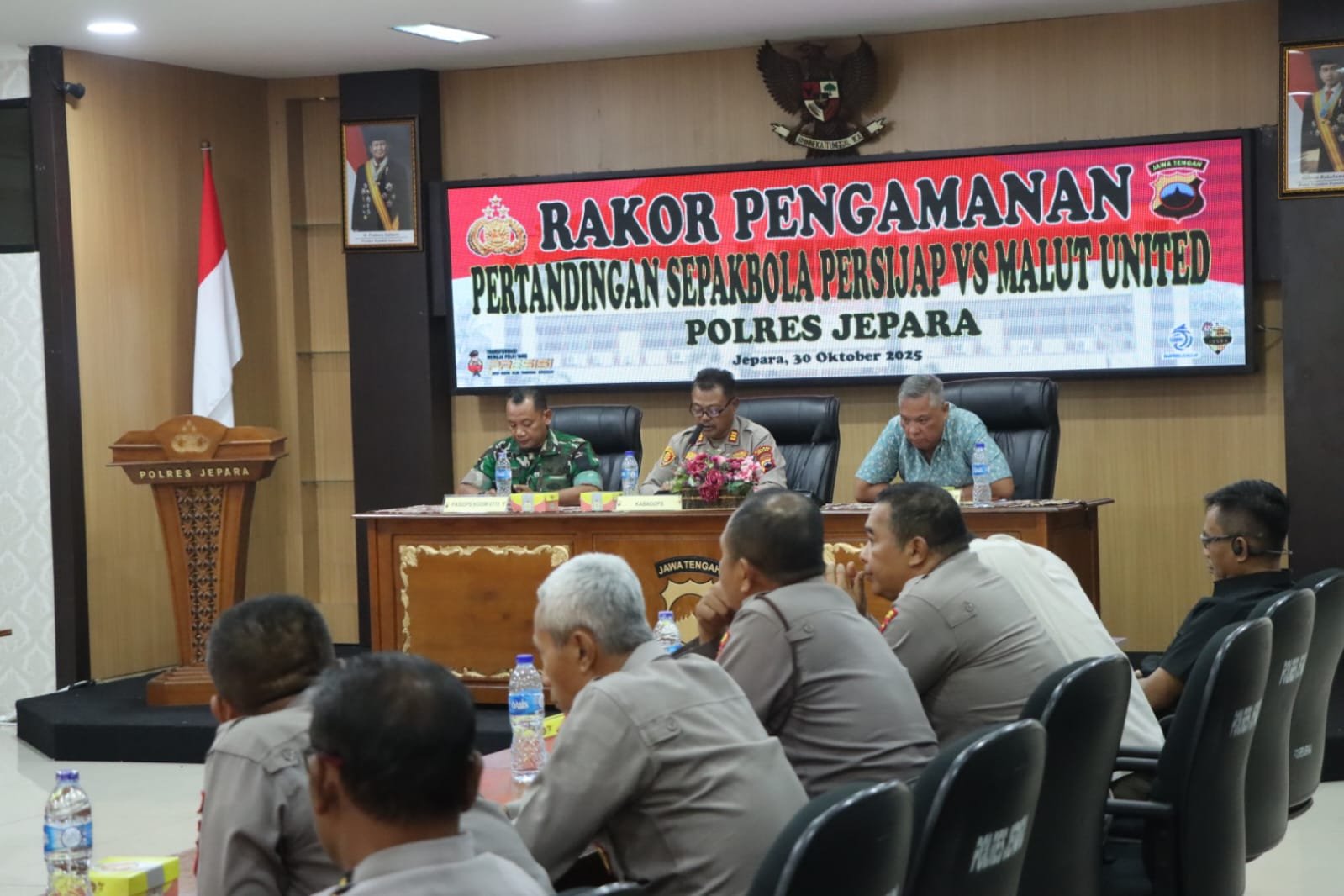Menjelang pertandingan Persijap Jepara menghadapi Malut United dalam lanjutan pekan ke-10 BRI Super League musim 2025/2026, Kepolisian Resor (Polres) Jepara, Polda Jawa Tengah, menggelar rapat koordinasi lintas sektor di aula Mapolres setempat, pada Kamis (30/10/2025).