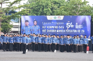 “Kita bersyukur hari ini, kita bersama-sama memperingati hari ulang tahun ke-54 Korpri, untuk itu atas nama organisasi Korpri, dan pribadi, saya menyampaikan selamat ulang tahun ke-54 kepada seluruh anggota Korpri di manapun saudara-saudara bertugas,” ucapnya.