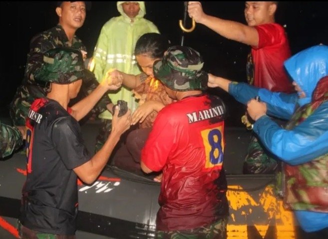 Prajurit Marinir bersama tenaga kesehatan terus melakukan penyisiran door to door sambil memberikan pemeriksaan medis bagi para lansia dan ibu-ibu yang mulai mengalami keluhan kesehatan dan malam hari, prajurit tetap melanjutkan penyisiran demi memastikan tidak ada warga yang terjebak,terutama kelompok rentan seperti lansia,ibu hamil,dan anak-anak.