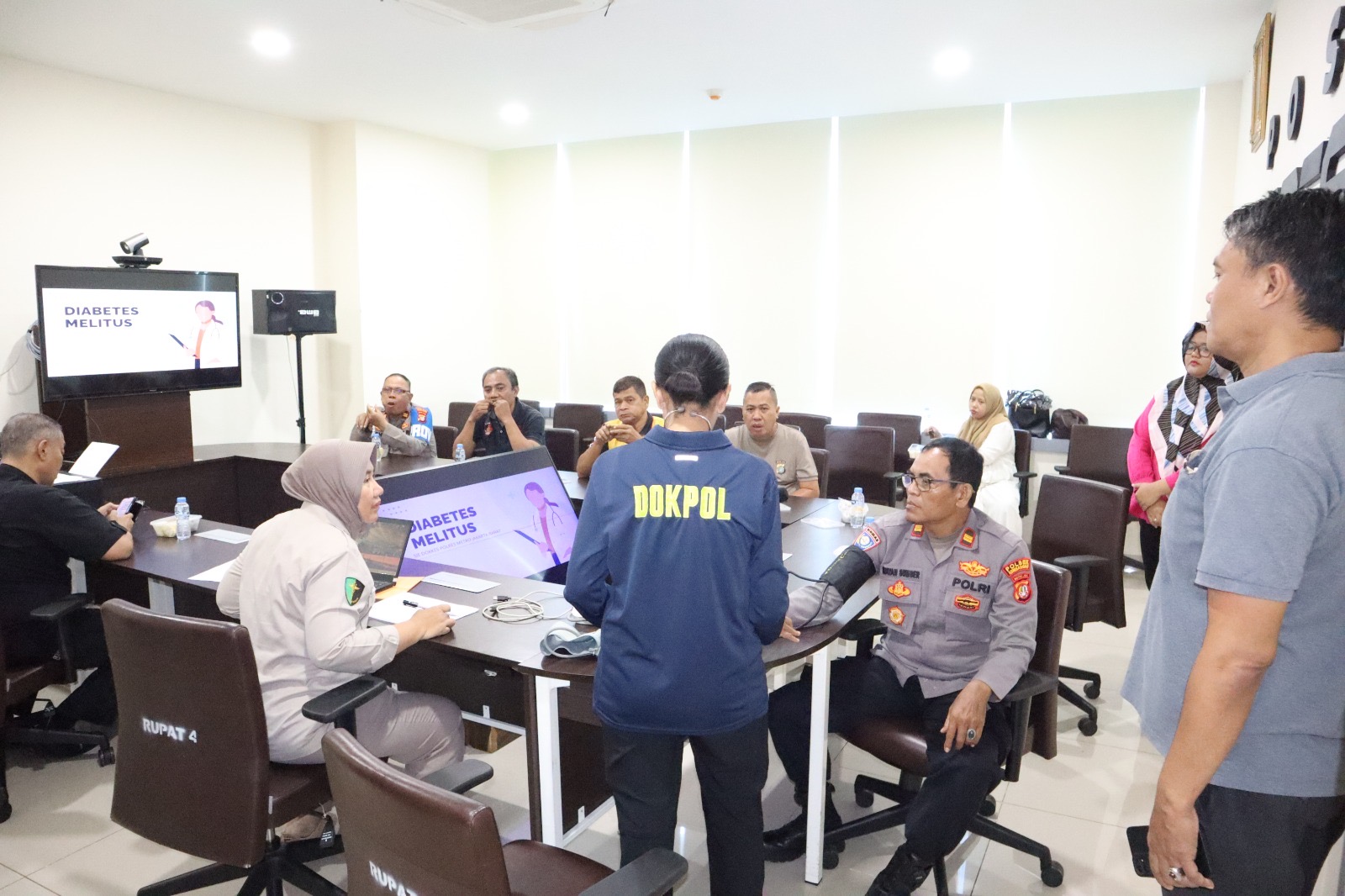 Kegiatan yang dimulai sejak pukul 08.00 WIB ini menyasar seluruh anggota Polres dan Polsek jajaran yang mengalami hipertensi dan diabetes melitus (DM).