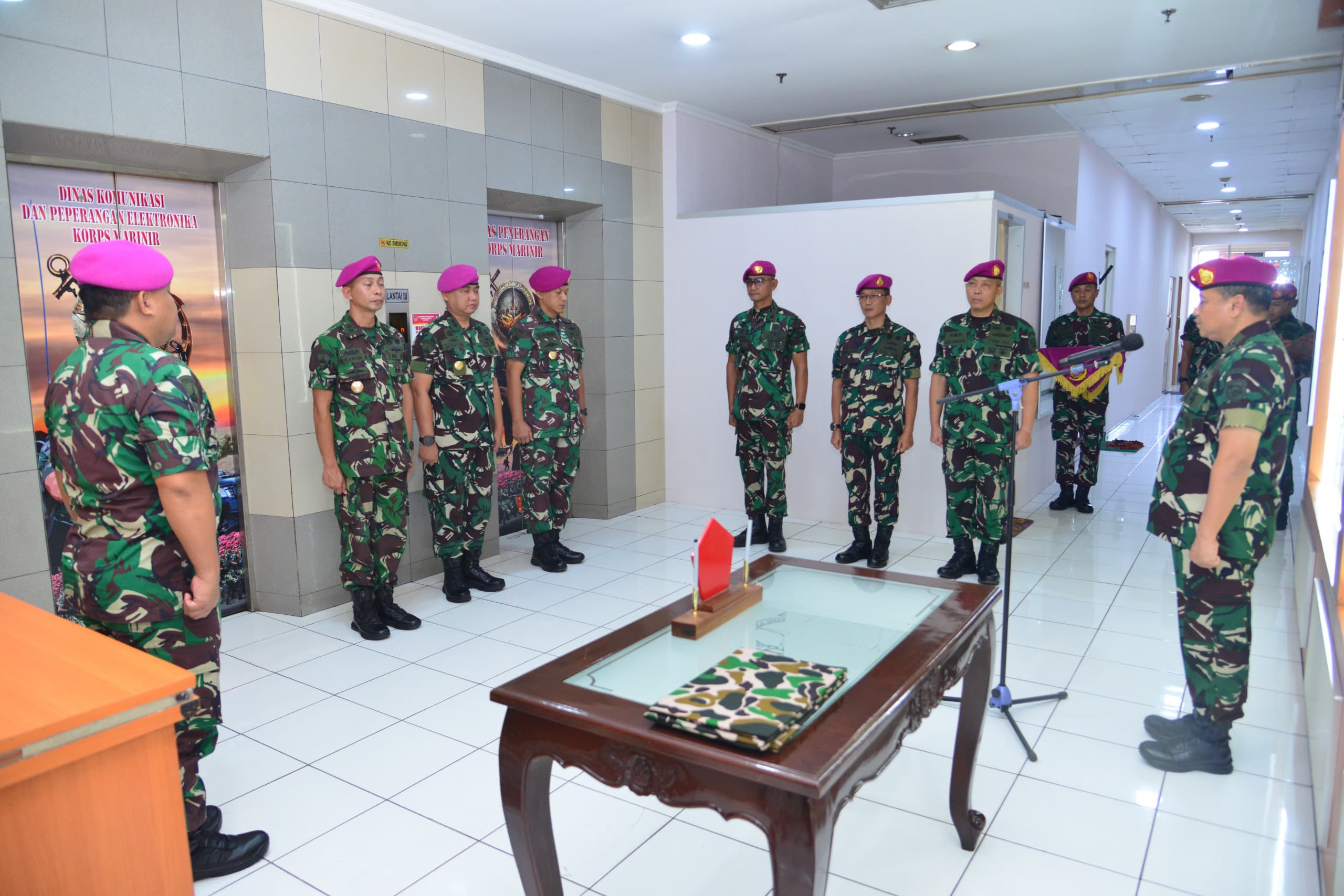 Asisten Komunikasi dan Elektronika Panglima Korps Marinir (Askomlek Pangkormar) Brigjen TNI (Mar) Dr. Wahyudi, S.E., M.Tr.Hanla., M.M M.Han, memimpin acara pengukuhan jabatan Paban di lingkungan Skomlek Kormar dalam rangka validasi organisasi yang bertempat di ruang Skomlek Kormar, Gedung Agoes Soebekti, Mako Kormar, Jakarta. Senin (05/01/2026).