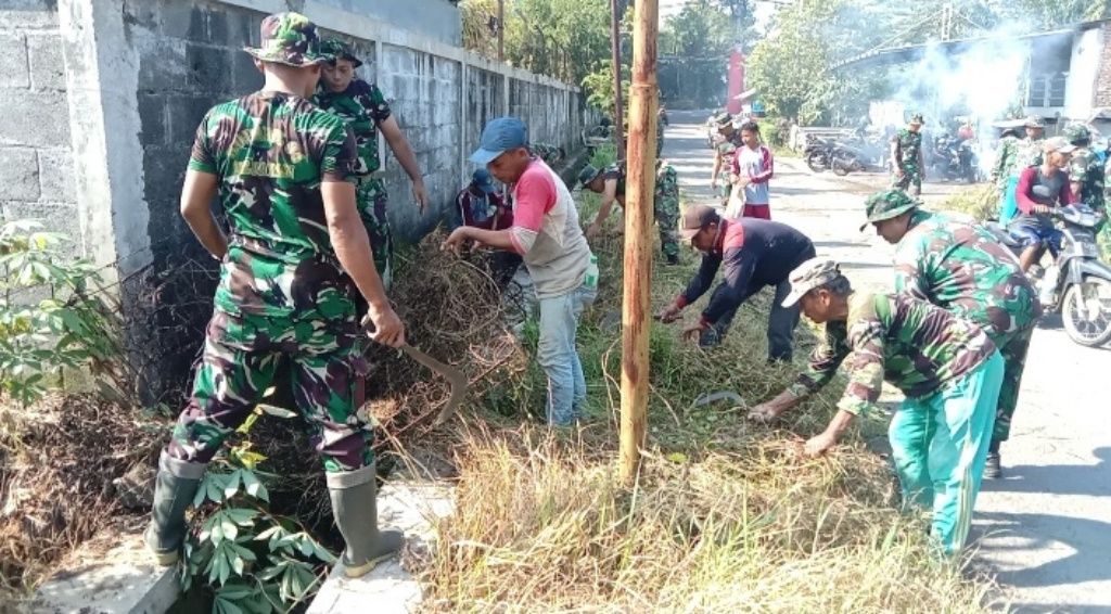 TNI dan Masyarakat menggelar karya bakti jelang pelaksanaan TNI Manunggal Membangun Desa (TMMD) ke-127 di Desa Wonosari, Kecamatan Gondangwetan, Kabupaten Pasuruan.