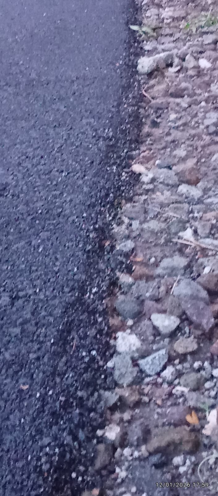 Selain permukaan jalan, warga juga mengeluhkan kondisi bahu jalan yang tidak diperkeras. Perbedaan elevasi antara badan jalan dan sisi tanah dinilai berpotensi membahayakan pengguna jalan, khususnya pengendara sepeda motor.