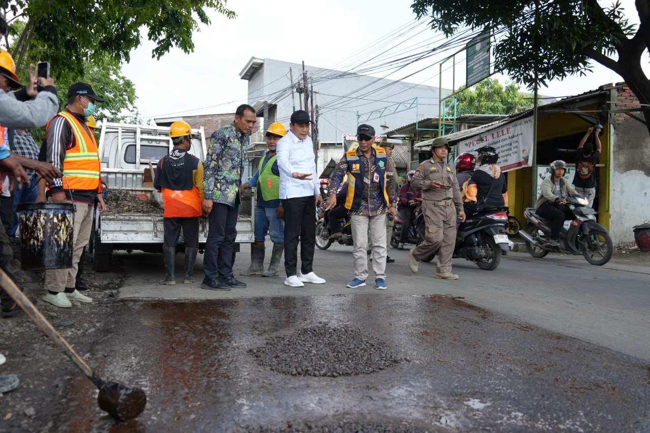 Dari pantauan bupati, perbaikan jalan sudah dimulai di depan Kecamatan Waru dan