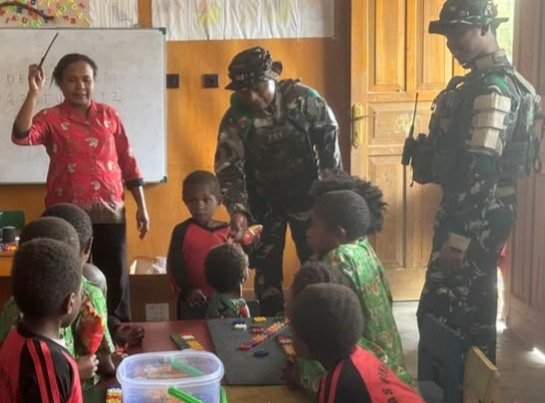 “TNI hadir tidak hanya menjaga pertahanan wilayah,tetapi juga ikut membina generasi muda agar tumbuh menjadi anak-anak yang berakhlak baik,ceria,dan bersemangat untuk belajar,”jelas Kapten Inf Nurkholis.
