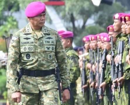 Kepala Staf Korps Marinir (Kas Kormar) Mayor Jenderal TNI (Mar) Suherlan mewakili Panglima Korps Marinir (Pangkormar) Letnan Jenderal TNI (Mar) Dr. Endi Supardi,S.E.,M.M.,M.Tr.Opsla., CHRMP.,CRMP.,menyambut kepulangan Satuan Tugas Pengamanan Perbatasan (Satgas Pamtas) RI-PNG Mobile Yonif 10 Marinir/Surabaya di Dermaga Kolinlamil,Tanjung Priok,Jakarta Utara, pada Senin (16/03/2026).