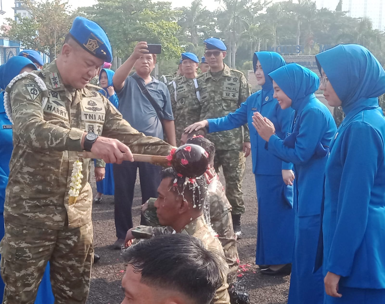 Komandan Pusat Polisi Militer Angkatan Laut (Danpuspomal) Mayjen TNI (Mar) Harry Indarto,S.E.,M.M.,didampingi Ketua Cabang BS Jalasenastri Puspomal Ny. Neneng Harry Indarto memimpin Acara Laporan Korps Kenaikan Pangkat Prajurit Puspomal periode 1 April 2026 bertempat di Lapangan Hitam Mako Puspomal, Kelapa Gading,Jakarta Utara,pada Rabu (01/04/2026).