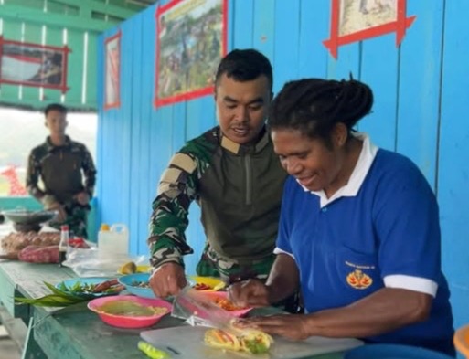 melaksanakan kegiatan pembinaan teritorial dengan mengajak Ibu-ibu di sekitar Pos untuk mengikuti pelatihan pengolahan ubi menjadi sushi,pada Rabu (08/04/2026). Kegiatan ini menjadi salah satu inovasi baru yang diperkenalkan prajurit TNI kepada masyarakat Pegunungan Bintang, khususnya di Wilayah Oksibil.