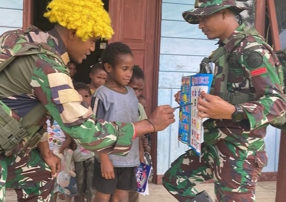 Pos Bulangkop Yonif 751/Vira Jaya Sakti (VJS) Satgas Swasembada melaksanakan kegiatan belajar membaca,nulis,dan hitung (Calistung) kepada anak-anak di sekitar Pos sebagai bentuk kepedulian terhadap pendidikan masyarakat Pedalaman,pada Selasa (21/04/2026). Kegiatan ini dipimpin oleh Dantimsus Letda Inf Sayiddina Ali.