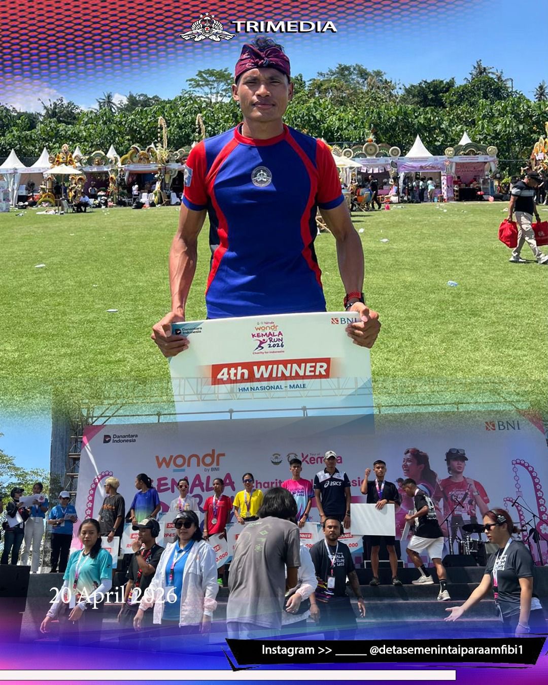 Prajurit Korps Marinir dari Detasemen Intai Para Amfibi 1 Marinir (Denipam 1 Mar) Praka Marinir Sedilta Pilon Nubatonis yang tergabung dalam Federation Triathlon Indonesia (FTI) Jawa Barat, kembali menorehkan prestasi gemilang pada ajang Kemala Run Bali 2026, Minggu (19/04/2026).