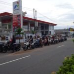 Krisis Pertalite Di SPBU Girimaya Pangkalpinang : Motor Dan Mobil Mengular